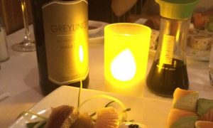 I normally sit outside, as I like to watch the people walking by. However this time we chose to sit inside for a change and I enjoyed the dim lights and romantic feel. We clinked our wine glasses (which the waiter kept generously topping up) and tucked into our sushi platters.