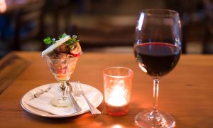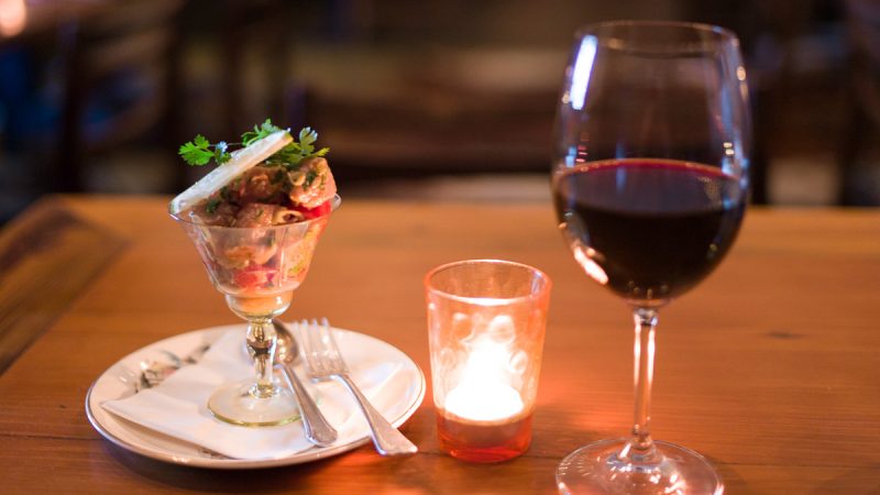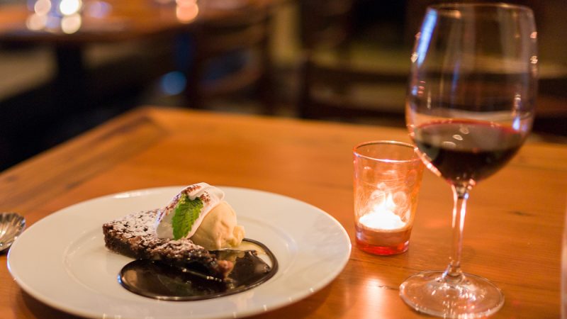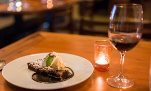 I stopped by to give the restaurant a try for a Friday lunch. Parking at the waterfront is always a bit difficult, but if you tell the guards you’re eating at Signal, you can park right in front of the hotel in reserved parking. The lunch menu has light and interesting small meals, salads, traditional favorites, and sandwiches. I sampled the smoked paprika squid with hand cut fries and saffron sofrito. The presentation was great and the flavors were really good except that the squid was possibly a bit over cooked. For dessert, I tried a cappuccino and the very interesting sounding baked orange cheesecake with macadamia nut butter, dulcey cremeux, and apricot sorbet. Dessert was really elegant and tasty.