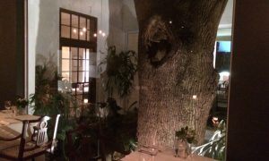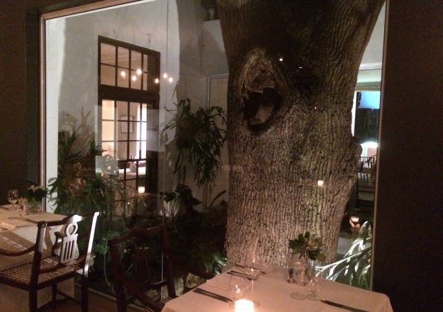 Walking into the The Conservatory, I couldn’t help but notice the giant glass box right in the middle of the dining room. At least four or five metres across, in the middle sits a giant oak tree that I learned was over 200 years old.